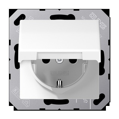 Розетка Jung AS 500, скрытый монтаж, с заземлением, с крышкой, со шторками, светло-серый, AS1520KIKLWW